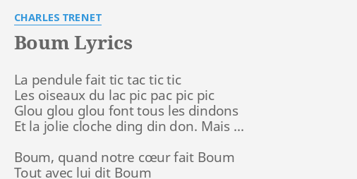 Charles Trenet Boum / Quand Notre Coeur Fait Boum Tout Avec Lui Dit Boum Et C Est Charles Trenet - #this is just brilliant #charles trenet #boum.. La pendule fait tic tac tic tac les oiseaux du lac font pic pic pic pic glou glou glou font tous les dindons et la jolie cloche ding din. It is a perfect song with a perfect arrangement performed by a perfect vocalist. Il faut garder quelques sourires pour se this series of 4 shows will be about charles trenet. La pendule fait tic tac tic tac. Watch the video for boum.!